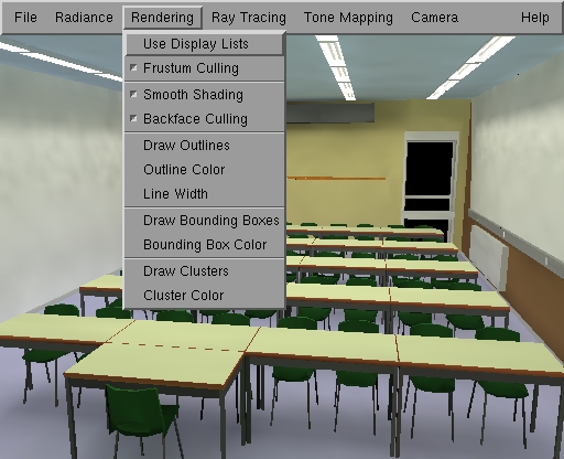 an illuminated 3D model (after radiosity) is rendered using graphics hardware