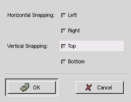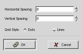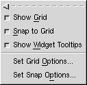 Il menu OpzioniMostra grigliaGlade deve mostrare una griglia, per facilitare l'allineamanto dei widget quando li si mette in un contenitore GtkFixed? Aggancia alla grigliaVolete che Glade agganci i widget alla griglia quando li posizionate in un contenitore GtkFixed? Mostra Suggerimenti dei widgetQuando il puntatore indugia su un widget, deve essere mostrato un suggerimento che descrive quel particolare widget? Opzioni della griglia