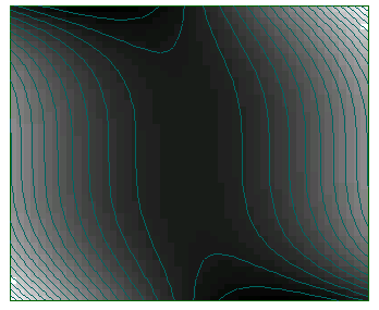 Dabei wird 50 als zusätzlicher Parameter übergeben, der für die Feinheit des Plots sorgt. Es sind weitere zusätzliche Parameter (der x- und y-Bereich, und die Anzahl der Höhenlinien) möglich, über die man mit >help fcontour Auskunft erhält. Einen guten Überblick über eine Funktion verschaffte ein kombinierter Dichte und Höhenlinien-Plot mit >color(5); fcd("x^2+x*y^3);