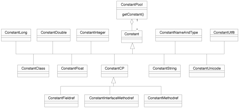 ConstantPoolGen cp = cg.getConstantPool(); // cg creates constant pool
