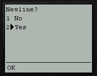 - "Newline?" " specifies that a trailing newline is to be appended to the submitted text (This option is enabled by default.)