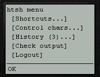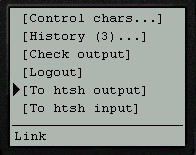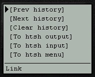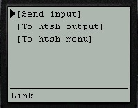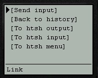 - The main htsh page combines all three parts (output, input, menu) onto a single page.