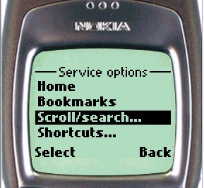 On the Nokia phone the Scroll/Search page appears as follows: