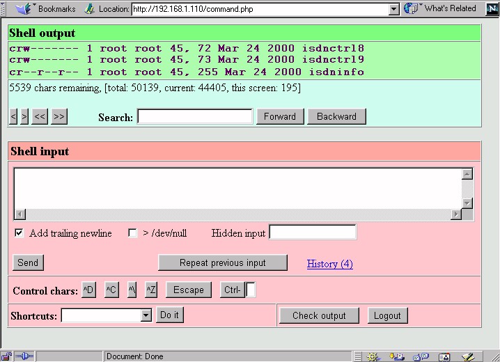 - Some commands to the Client Shell may generate large amounts of output. Rather than transmitting all of this output to the HTTP Server / Client Browser, the Client Shell will transmit only a portion to the HTTP Server. Further output will be sent to the HTTP Server as described in the previous point.
